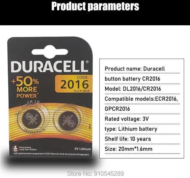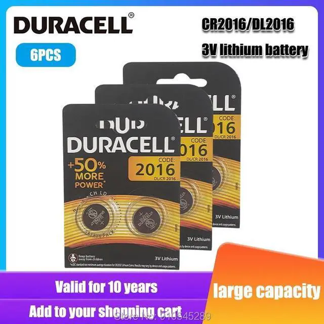 6PCS for DURACELL CR2016 Button Cell Battery 3V Lithium Batteries for Watch Toy Computer Calculator Control DLCR 2016
