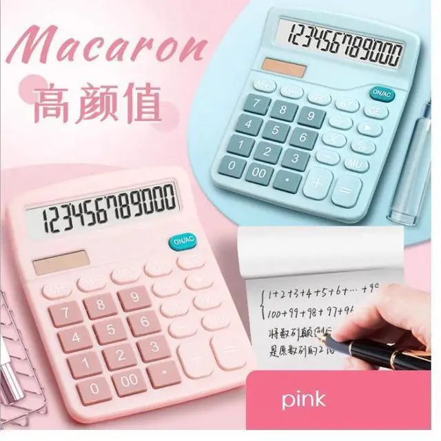 Macaron blue pink 12 Digit Desk Solar Calculator Large Buttons Financial Business Accounting Tool big buttons for school student
