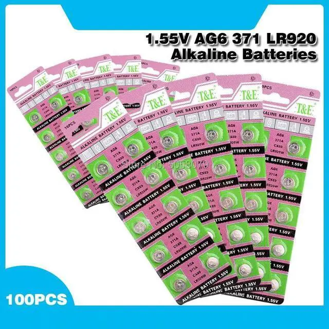100pcs Alkaline Cell Coin Battery 1.55V AG6 LR920 Button Batteries 371A CX69 LR920W 371 L921 SR927 171 G6A AG 6 For Watch Toys