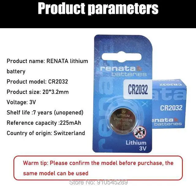 20pcs battery for RENATA cr2032 3v button cell coin batteries for watch computer cr 2032 ECR2032 For Toys Watches