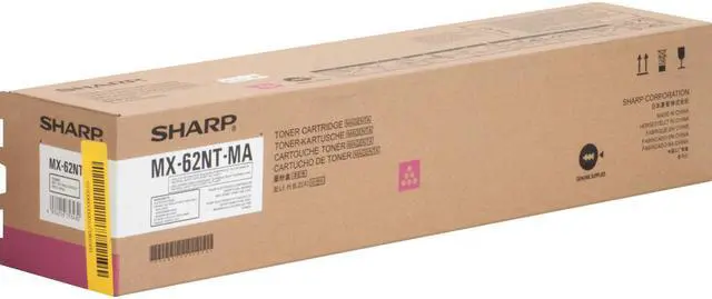 Sharp MX62NTMA Original Toner Cartridge - Laser - High Yield - 40000 Pages - Magenta - 1 Each Toner cartridge delivers proven quality in your Sharp MX-6240N, MX-6500N, MX-7040N and MX-7500N. Enhance your print quality and savings with reliable, clean, sharp printing. Design offers consistent reliability and makes it easy to install the cartridge. Cartridge yields approximately 40, 000 pages.