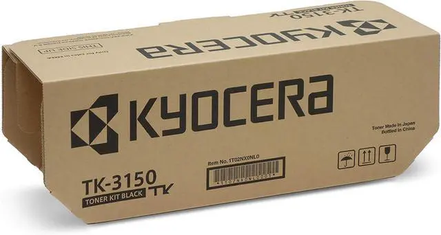 Scope of delivery: Kyocera 1T02NX0NL0 TK-3150K toner cartridge in black with original packaging, including installation guide and a disposal bag for the empty toner cartridge