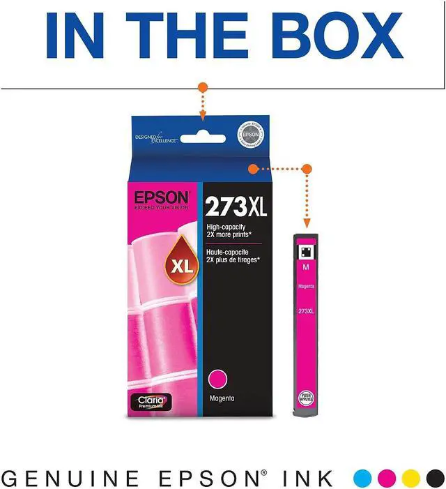 Enhance the quality of office documents with this Epson 273XL high-capacity magenta ink cartridge.