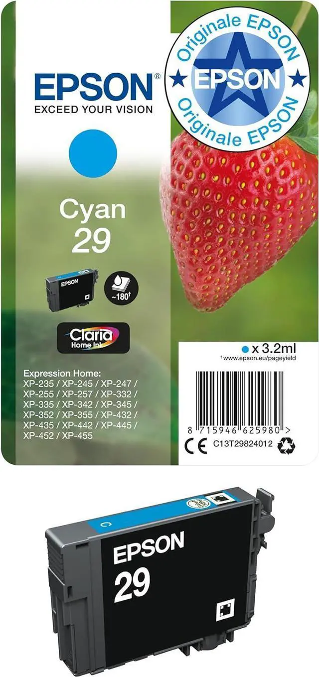 Epson 29 - 3.2 ml - azul cyan - original - blister com rf/alarme acústico - tinteiro - para expression home xp-235, 245, 247, 255, 332, 335, 342, 345, 432, 435, 442, 445, 455