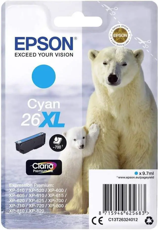 Original inkjet cartridges Ink Cartridges Number of pages printed: 500 Suitable for xp600,605,700,800 EP62568 EPSON T2632 XL Cyan Ink Compatible Devices: Epson Printer Number of pages printed: 700