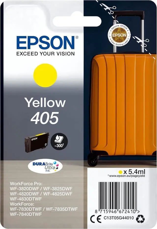 These efficient, independent Epson cartridges consistently deliver fantastic value; as Epson tests and approves, their reliability and optimal quality are guaranteed. Wide selection of standard and XL cartridges Easily identifiable suitcase image Convenient 4-colour multipack Epson DURABrite Ultra ink is ideal for producing professional laser-quality documents. Its pigment ink system produces water, smudge and marker ink resistant documents, and its quick-drying properties make it perfect for duplex printing. To top it off, there is an affordable cartridge for every type of user, both in standard and XL sizes. Find it easily in the store by searching for the image of the suitcase.