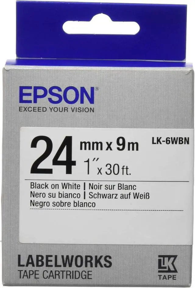 Ideal for everyday use Red, blue or black text on a white background Epson labels are designed to last Durable labels resist water and withstand hot and cold conditions Great-value 9-metre label tapes