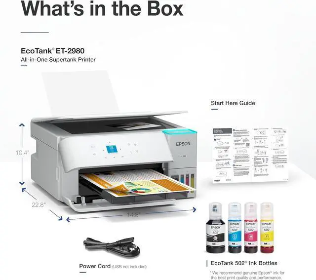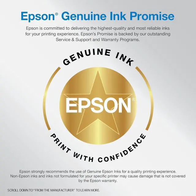 USE GENUINE EPSON INK For optimal print quality and performance. Non-genuine ink could cause damage not covered by the printers limited warranty