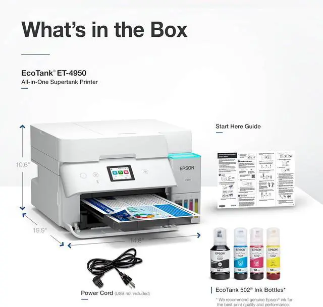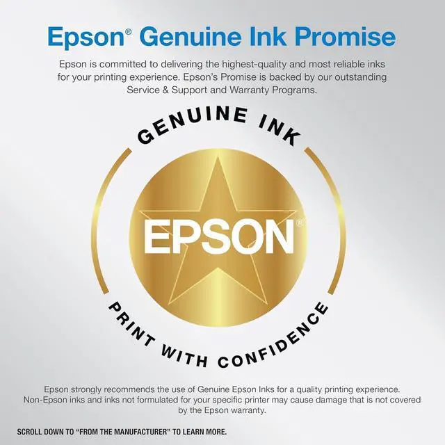 USE GENUINE EPSON INK For optimal print quality and performance. Non-genuine ink could cause damage not covered by the printers limited warranty