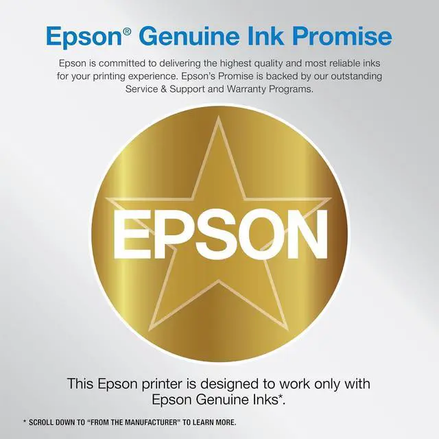 Epson printing system is designed to be used exclusively with Epson Genuine Cartridges*. Use of non-genuine ink could cause damage not covered under the printers ltd. wnty.