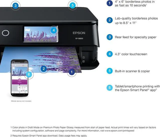 Fast photo printing delivers 4" x 6" borderless photos with astounding detail and accuracy in as fast as 10 seconds (1)