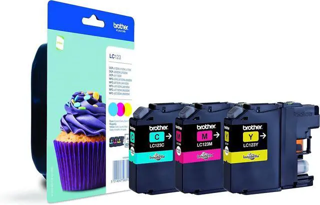 BROTHER INK C.M.J 600P. Contains genuine Brother LC123 x Cyan, LC123 x Magenta and LC123 x Yellow cartridges Page yield approximately 600 pages per cartridge, in accordance with ISO24711 Higher page yields on average compared to typical refilled inks. Formulated to resist fading for over 100 years. Protect your investment by purchasing genuine Brother ink Plus Brother genuine cartridges are produced by the same engineers as your Brother hardware Suitable for the following Brother printers: DCP-J4110DW MFC-J4410DW MFC-J4510DW MFC-J4610DW MFC-J4710DW MFC-J4710DW