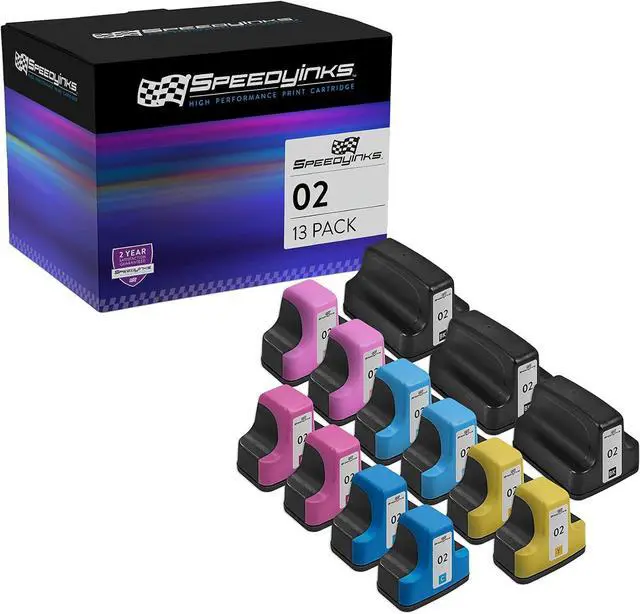 Included: 14 Pack Remanufactured Replacement for HP 02 Printer Ink w/ smart chip - 3 C8721WN Black, 2 C8771WN Cyan, 2 C8772WN Magenta, 2 C8773WN Yellow, 2 C8774WN Light Cyan, 2 C8775WN Light Magenta