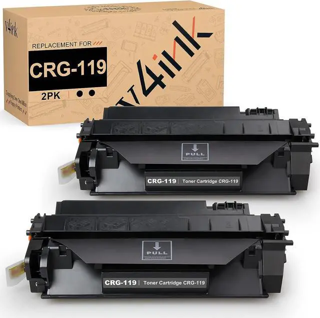 Package Includes: 2 Packs Black v4ink CRG-119 Compatible Toner Cartridges, with 2,700 Pages per Toner Cartridge based on 5% Coverage (letter A4).