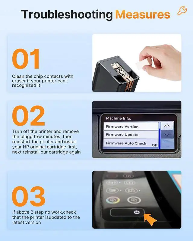 NOTEfor HP has released new firmware (version 2510AR) for printers (model 28** / 42**) Some printers may display the error message: "Non-HP Chip or Circuitry Detected." after the upgrade. If you still want to give our ink cartridge a try, please do not upgrade your printer firmware.