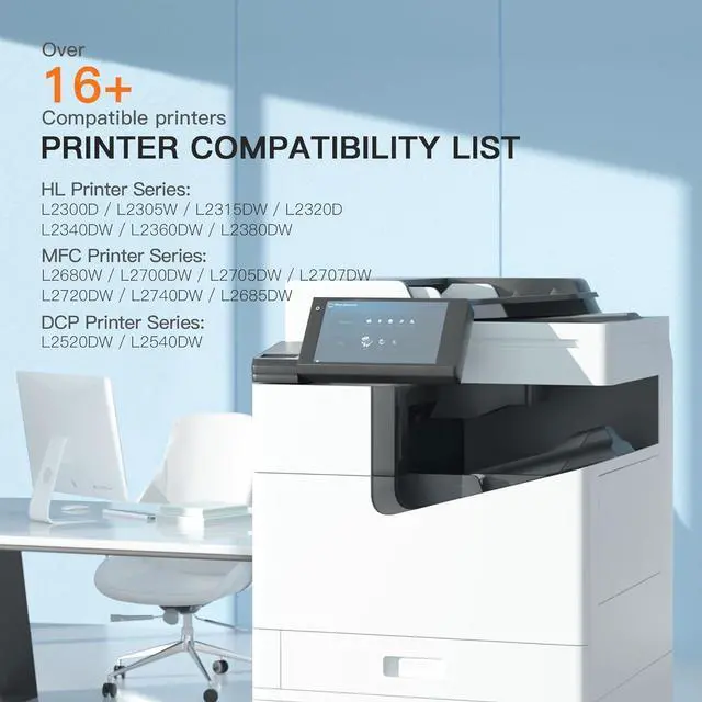 Printer Compatibility: Compatible with HL-L2300D, HL-L2305W, HL-L2315DW, HL-L2320D, HL-L2340DW, HL-L2360DW, HL-L2380DW, MFC-L2680W, MFC-L2700DW, MFC-L2705DW, MFC-L2707DW, MFC-L2720DW, MFC-L2740DW, MFC-L2685DW, DCP-L2520DW, DCP-L2540DW Printer