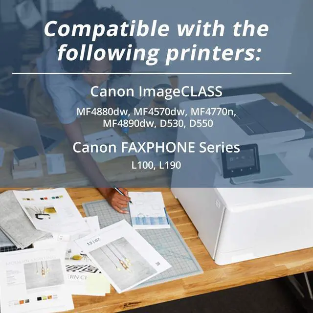 For use in the following Canon Fax Phone Printers: L100 and L190, and Image Class printers: D530, D550, MF4412, MF4420n, MF4450, MF4550, MF4550d, MF4570dn, MF4570dw, MF4580dn, MF4770n, MF4880dw, and MF4890dw