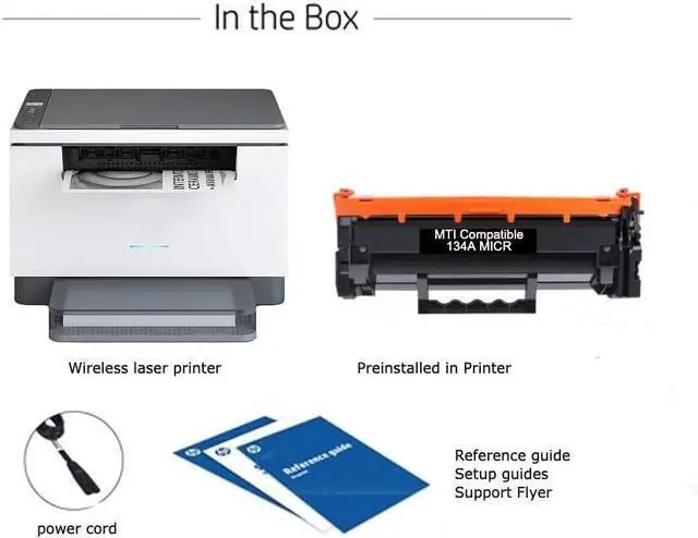 INCLUDES: LaserJet M209DW MICR printer plus 1 Compatible MTI 134A W1340A MICR Cartridge for printing personal and business checks - preloaded in printer for your convenience