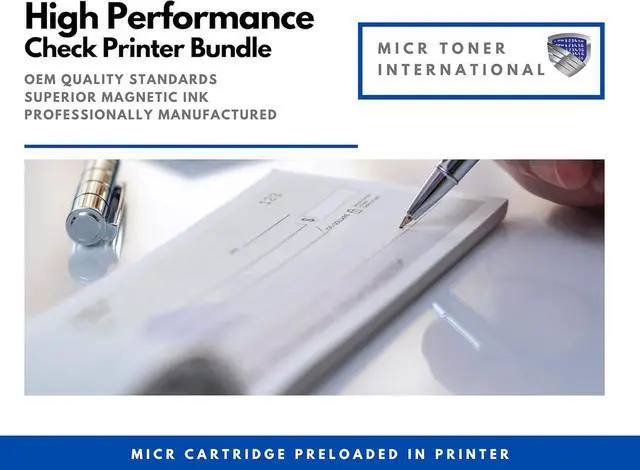 PAGE YIELD: Starter MICR cartridge (700 page yield; prints 2100 checks @ 3 per page) manufactured by expert MTI technicians with our superior magnetic toner for guaranteed bank acceptance and OEM chip for smooth, uninterrupted printing