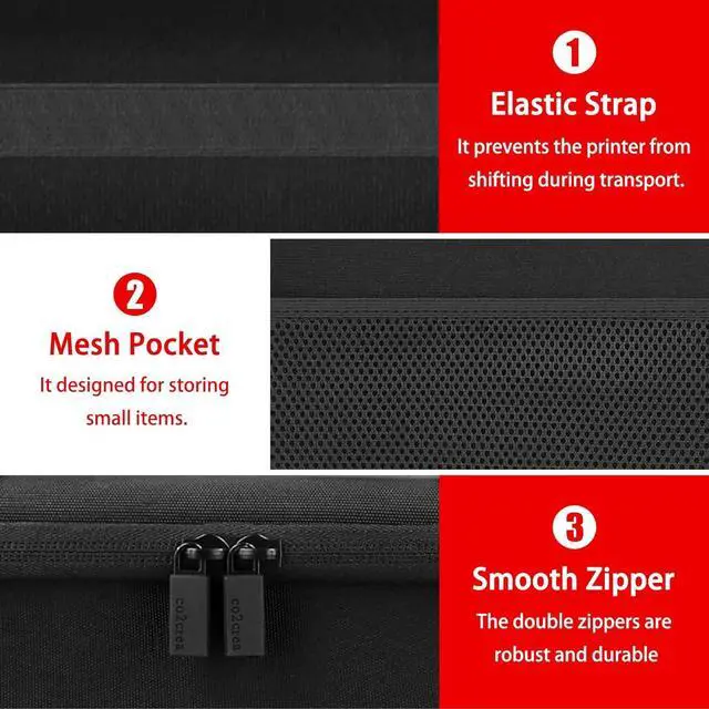 co2CREA hard mobile printer case replacement for Canon PIXMA TR160 / TR150 / iP110 wireless mobile printer. Hard EVA shell case is shockproof dustproof and water resistance, protect your Canon PIXMA TR160/iP110 wireless portable printer Canon PIXMA wireless mobile printer with airprint and cloud from drops, scratches, bumps, splash, and dust. and hard case for Canon PIXMA iP110 cloud printer TR160 has a special and strong zipper, which can bring you a better using experience.