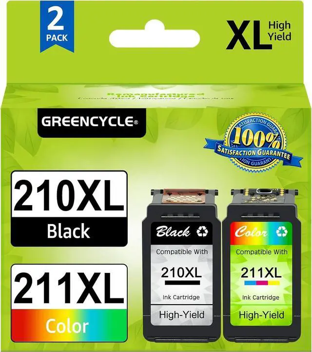 greencycle 2 Pack Remanufactured PG-210XL CL-211XL PG210XL CL211XL Ink Cartridge Replacement for Canon 210xl 211XL 210 211 XL for Canon PIXMA MP490 MP480 MP495 MP499 Printer (1 Black, 1 Tri-Color)
