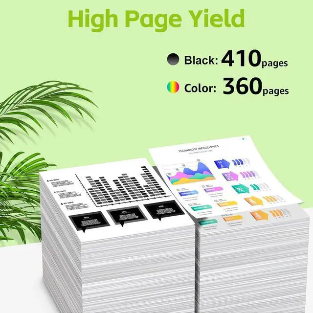 • Page Yield:410 pages per black and 360 pages per tri-color cartridge at 5% coverage(Letter/A4).