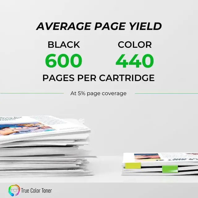 LONG LASTING INK CARTRIDGES. Print up to an approximate 600 pages per Black cartridge, and 440 per Color cartridge.