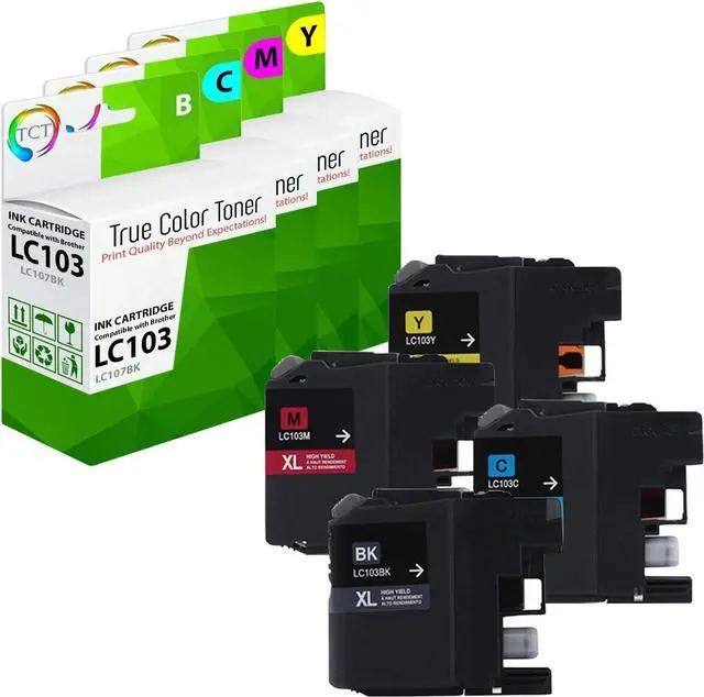 PACKAGE CONTENTS: 1 LC103 Black, 1 LC103 Cyan, 1 LC103 Magenta, and 1 LC103 Yellow replacement Ink Cartridges