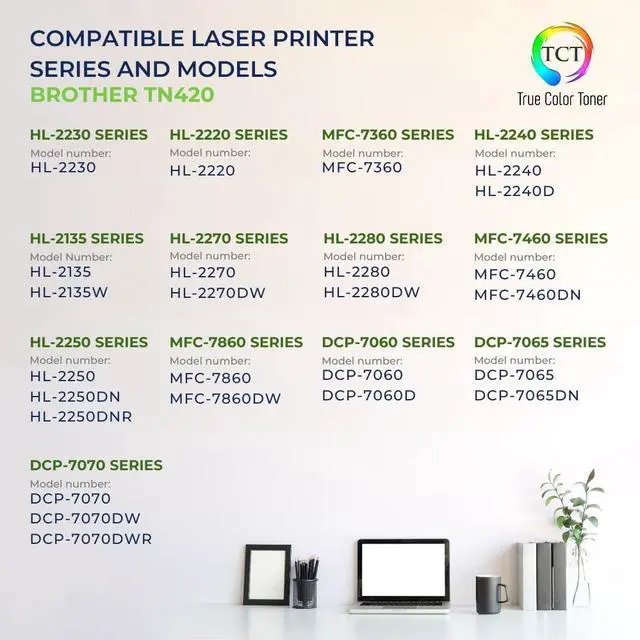 • Package Contents: 4 × TCT Compatible Replacement Monochrome Toner Cartridges for the Brother TN-420