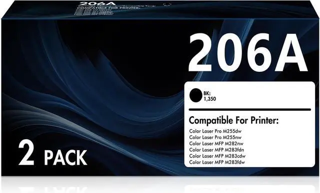 Compatible 2 Packs 206A 206X 206 W2110A Toner Cartridges (High Yield) for HP Color LaserJet Pro M283fdw Printer