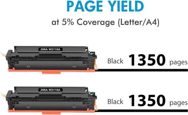 High Page Yield: Up to 2x 1,350 Pages per 206A W2110A Black Toner Cartridges (Letter/A4, at 5% Coverage)