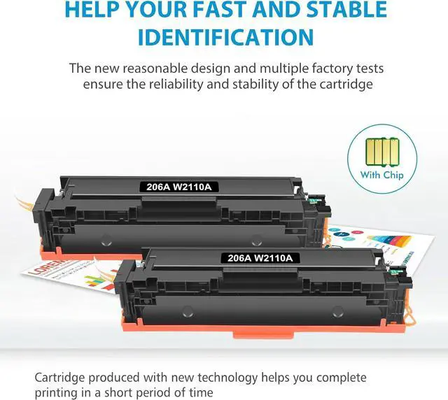 Superior quality: High-efficiency 206A with chips toner to get the clear text and vivid color printing. These W2110A toner cartridges are alread installed with orginal chips, No need to transfer orginal toner chip to them
