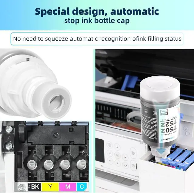 Auto Stop Bottles: The 522 / 502 ink bottle is auto-stop designed, no spill, easy fill, and stay chill. Refill your Ecotank&Supertank printers easily, This works as the OEM does.
