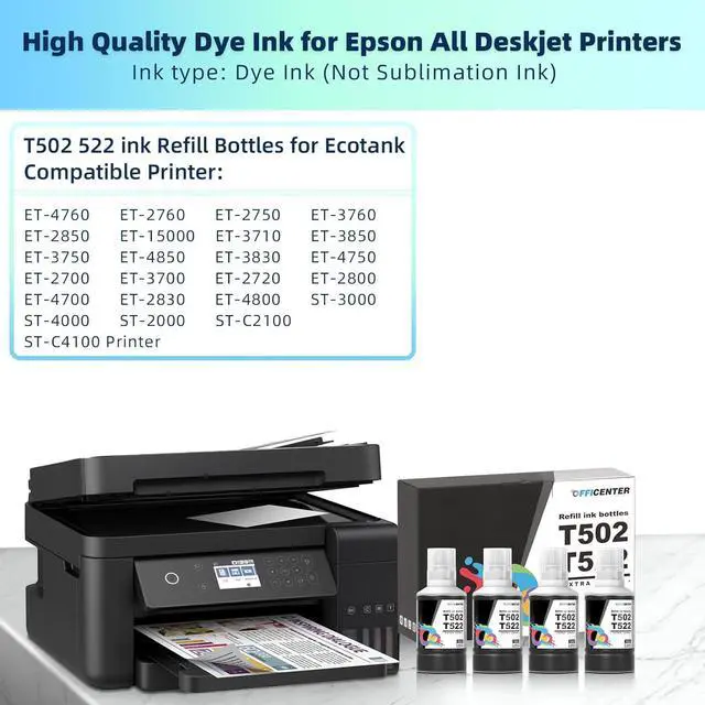 Outstanding performance and high quality: T522/ T502 ink bottle contains high-quality dye ink, and the printing is clear to meet your office home printing at any time.