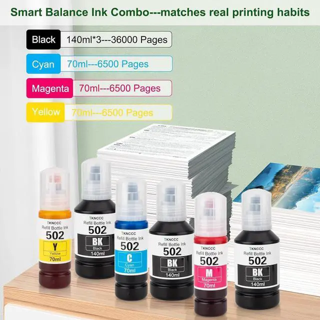 502 ink replacement compatible with ET-2980, ET 2850, ET 3850, ET 4850, ET 4760, ET 3760, ET 2760, ET 3830, ET 3843, ET 2750, ET 4750, ET 3750, ET-2988, ET-3943 printers, for 2850 ink, 3850 ink, 3843 ink, 4850 ink, 2760 ink, 3760 ink, 4760 ink, et-2980 ink, et-2760 ink, et-3760 ink, et-4760 ink, et-2850 ink, et-3850 ink, et-15000 ink, et-3830 ink, et-4850 ink, et-2988 ink, et-3943 ink, et-3843 ink, for et 3850 ink refill, et 2850 ink refill, et 4850 ink refill, et 2760 ink refill, et 3760 ink refill, et 4760 ink refill, et- 3830 ink refill, et-2850 ink refill bottles.