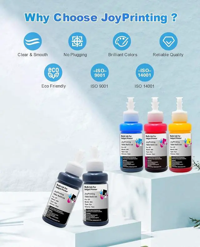 JoyPrinting 664 Ink Refill Bottles ET 2550 ET 2650 Ink Refill Seamless Compatibility and Superior Page Yield JoyPrinting 664 Ink Refill are 100% compatible: Print more pages with low lost Easy to Refill Step 1: Step 2: Step 3: Step 4: Print in Confidence with High Quality No Nozzle Clogging Ultra High Capacity
