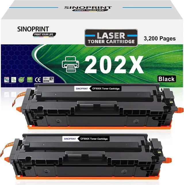 Package Includes: 2 packs black 202X CF500X toner. (Also Compatible for 202A CF500A CF501A CF502A CF503A).