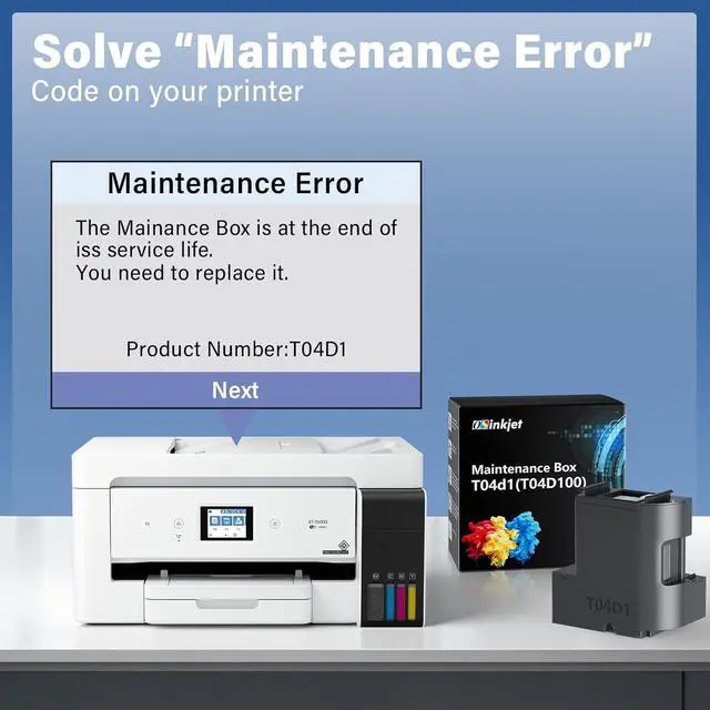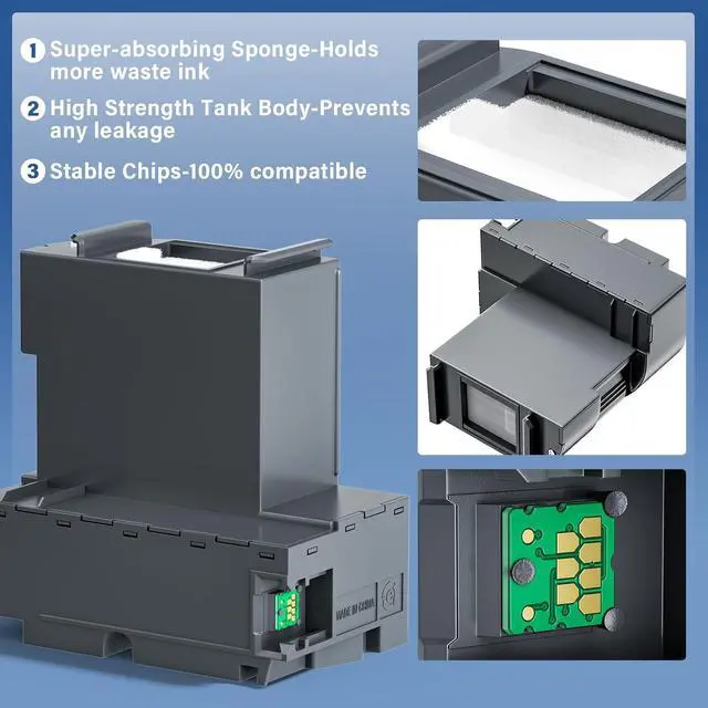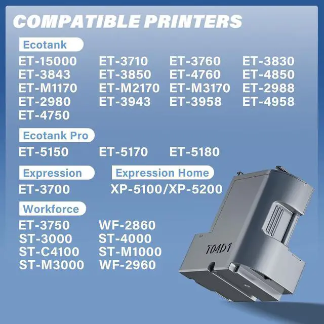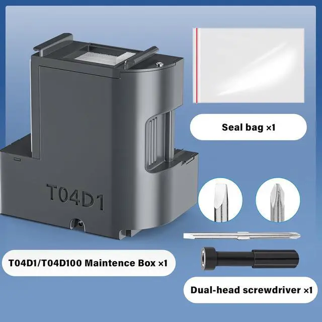 Part Number: T04D1/T04D100/EWMB2/C13T04D100 ink maintenance box. Compatible printers: Osinkjet t04d1 ink maintenance box work with ET-15000 ET-3760 ET-3850 ET-4850 ET-3830 ET-3843 ET-4760 ET-M3170 ET-M1170 ET-M2170 ET-3710 ET-5180 ET-5170 ET-5150 Expression Home XP-5200 XP-5100E ET-3700 WorkForce ST-3000 WF-2860 ET-3750 ST-4000 ST-C4100 WF-2960 ST-M1000 ST-M3000 Swift Replacement: Grab our package containing one T04D100 maintenance box, a 2-head screwdriver, and a PE seal bag. Everything you need for a seamless replacement is inside. Swap it out in just a minute, hassle-free. Reliable & Robust: With an ultra-absorbent sponge and strong PE structure, the t04d1 maintenance box holds 20% more ink, stays leak-free, and maintains stable chip performance. Worry-free service: If you have any problems related to this 04D1 maintence box, contact our service and you will get response within 12 hours. Easy Support: For any 04D1 maintenance box issues, contact us. Expect a response within 12 hours for a quick solution.