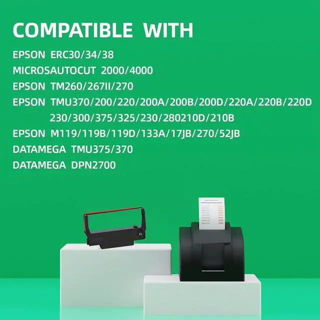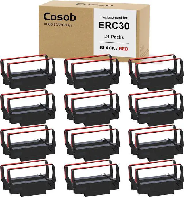 Description:Cosob 24 pack erc30 black and red ribbon compatible with epson tm-u220 m188b erc30 erc34 erc38 nk506 printer. Package:24pcs ERC30 ribbon Compatible with:Cosob erc30 printer ribbon compatible with Epson NK506 DPN2700, TMU370, TMU375, 270, 300D, ERC30, ERC34, ERC38, M115ATMU375, M119, M119B, M119D, M133A, M17JB, M270 Printer.