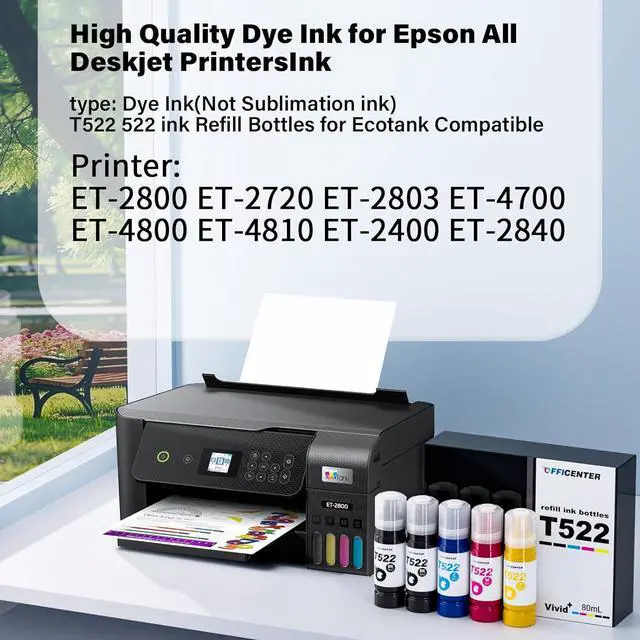 Compatible Printers: 522 ink refill Bottles for Ecotank ET-2720 ET-2800 ET-2803 ET-4700 ET-4800 ET-4810 ET-2400 ET-2840 Printer