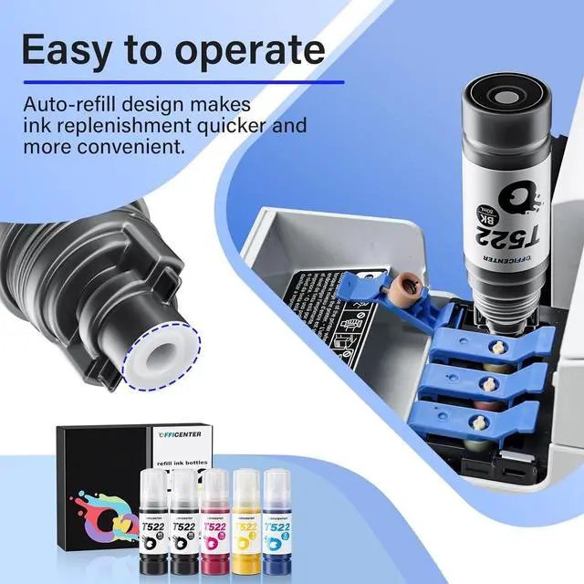 Easy to operate: 522 ink refill bottles adopt auto-stop design, no overflow, easy to refill, easily refill your Ecotank printer, the operation is the same as OEM ink.
