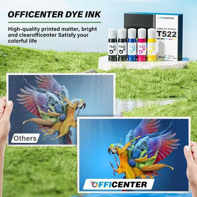High quality dye ink: 522 ink prints smoothly and clear colors for printing documents, photos, etc. (Note: non-sublimation ink)