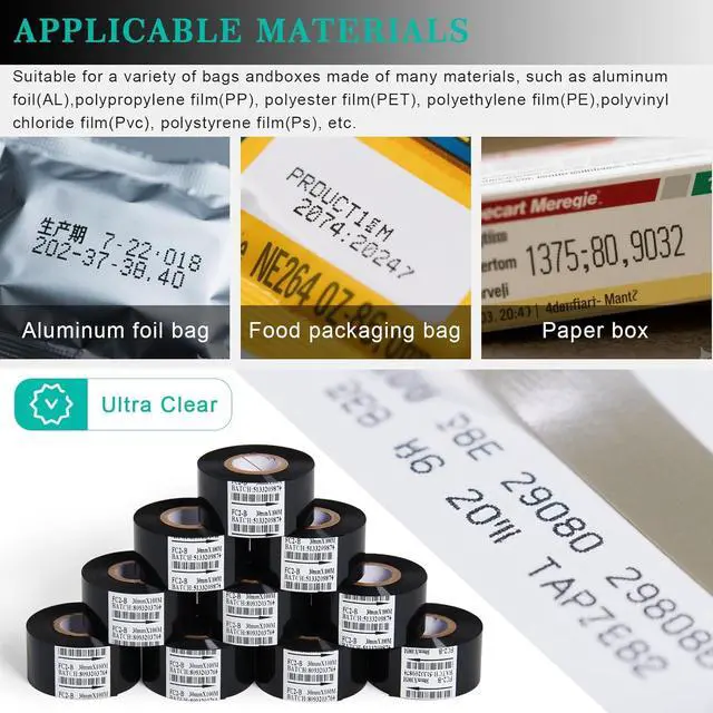 TRUSTWORTHY QUALITY----Printed characters are not easy to be erased and fall off. The ink is evenly attached to the surface of the ribbon, printed character is very clear to see. Product material testing results meets EU RoHS Directive 2002/95/EC.