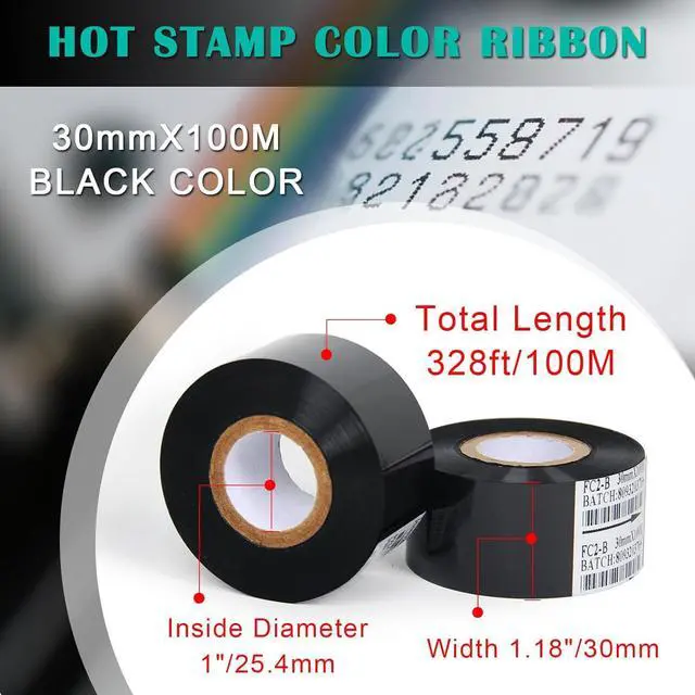 PARAMETERS----Color: Black. Size: 30mm x 100m. Temperature Range: 230 to 356/110 to 180. Color: Black. Quantity: 10 rolls.