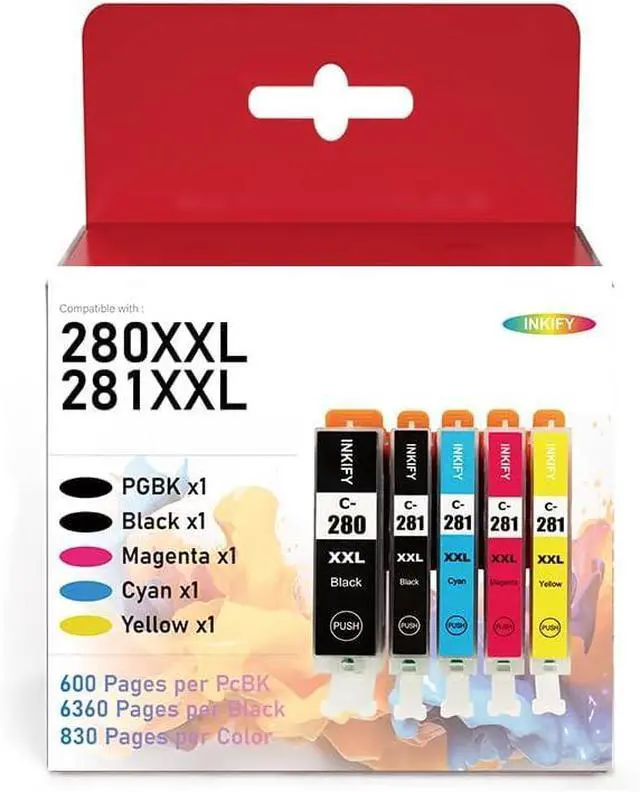 PGI-280XXL/CLI-281XXL Compatible Ink Cartridge Replacement for Ink 280 and 281 Cartridge High Yield Use to PIXMA TR7520 TR8520 TR8500 TR8600 TR8620 TS6120 TS6220 TS9120 (5 Value Pack)