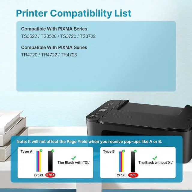 Reliable Printing Quality: 275XL 276XL for printer ink 275 276 combo pack is equipped with the latest upgrade Intelligent Chips,which is subjected to the highest and most rigorous quality testing to ensure that it prints Clear, Crisp text and Vibrant color images, giving you a different experience