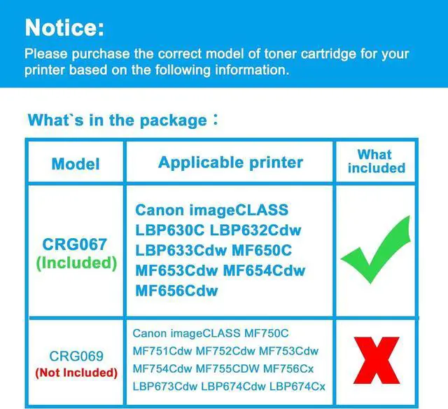 Compatible PrintersReplacement for Canon imageCLASS LBP630C LBP632Cdw LBP633Cdw MF650C MF653Cdw MF654Cdw MF656Cdw