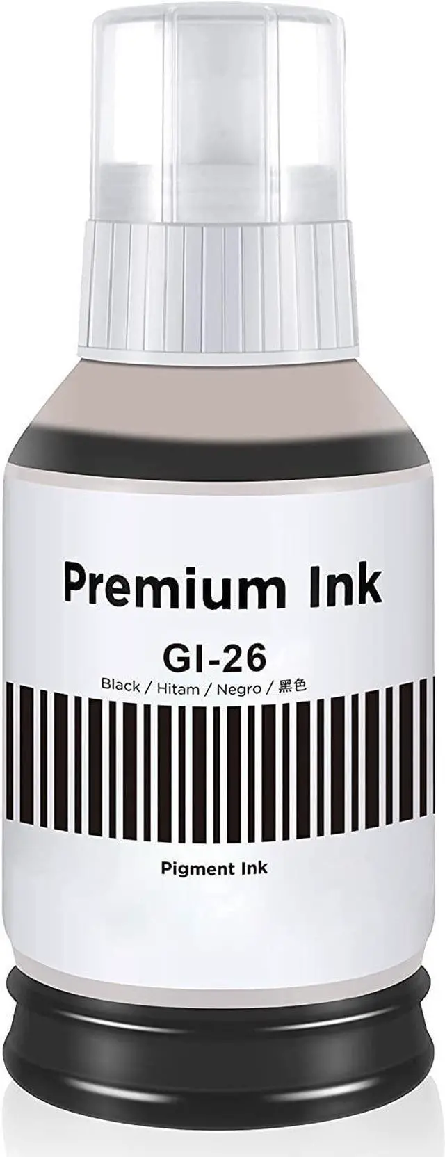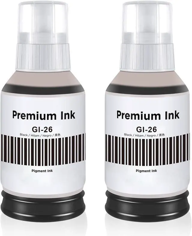 Page Yield: Standard mode print capacity 6000 pages, Up to 9000 pages in economy mode. Ink Capacity: 170ml per Bottle, Total 340ML Replacement for canon GI-26 GI26 GI 26 ink bottles.