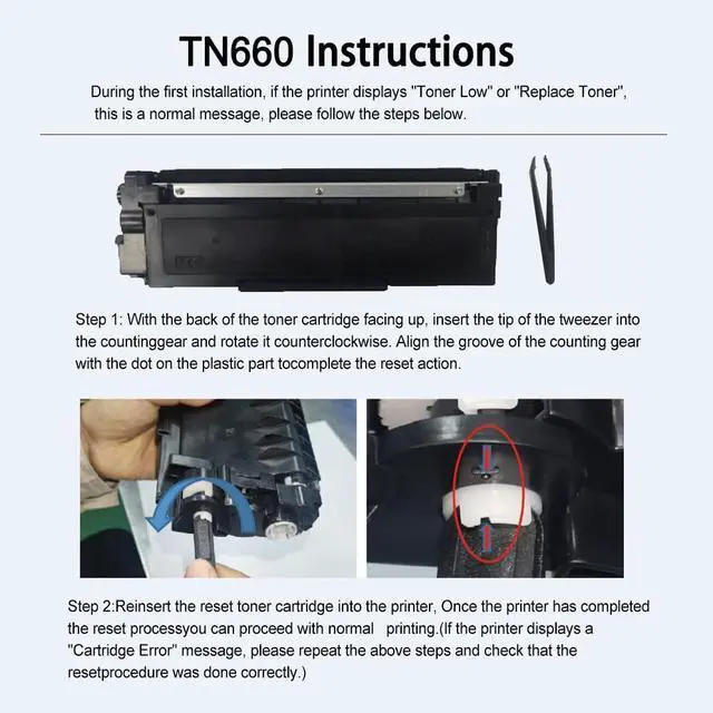 Printer Compatibility: TN660 toner cartridge can compatible with Brother HL-L2300D, HL-L2305W, HL-L2320D, HL-L2340DW, HL-L2360DN, HL-L2360DW, HL-L2365DW, HL-L2380DW, DCP-L2500D, DCP-L2520DW, DCP-L2540DN, DCP-L2540DW, DCP-L2560DW, MFC-L2700DW, MFC-L2707DW, MFC-L2720DW, MFC-L2740DW, MFC-L2700DWR, MFC-L2700DN, MFC-L2680W, MFC-L2705DW.