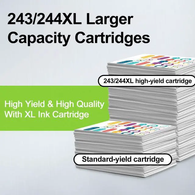 Higher Page Yield: Up to 650 Pages per 243xl black ink cartridge, 500 Pages per 244xl tri-color ink cartridge at 5% coverage (A4/letter).